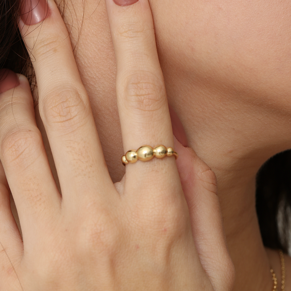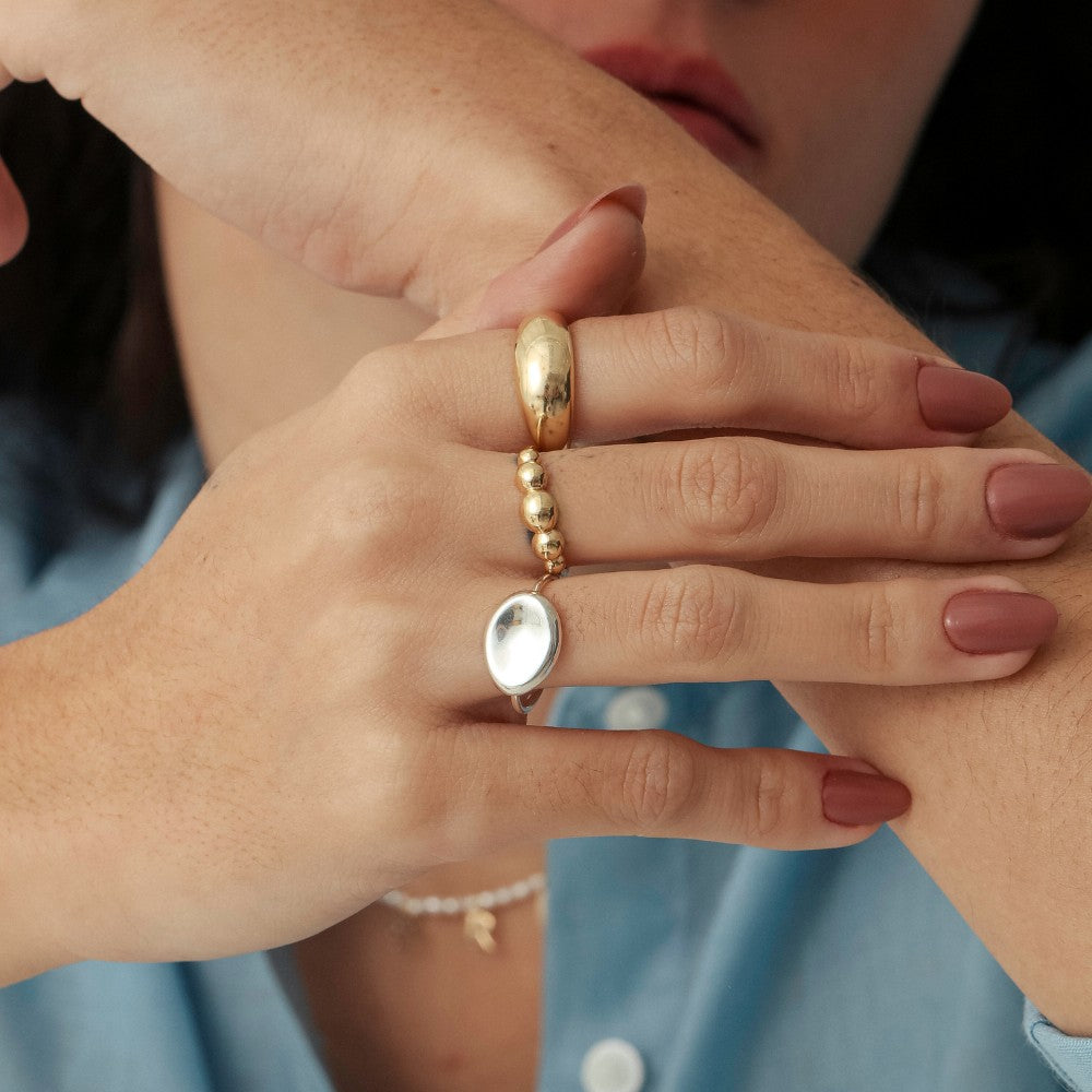 Um anel incrível para compor com outros dentro da vibe bold ou com outros mais delicados. Nosso anel Bolotas é super versátil, confortável... é aquele anel que não vai mais sair do seu dedo.