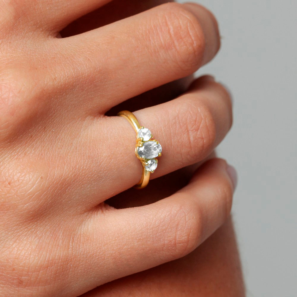 É uma joia que você não vai querer tirar. Pedra oval tamanho 4x6mm e pedras laterais redondas tamanho 3mm.