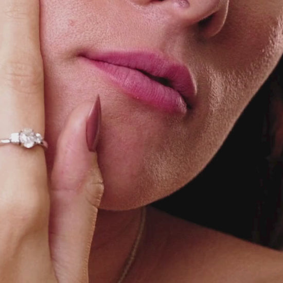É uma joia que você não vai querer tirar. Pedra oval tamanho 4x6mm e pedras laterais redondas tamanho 3mm.