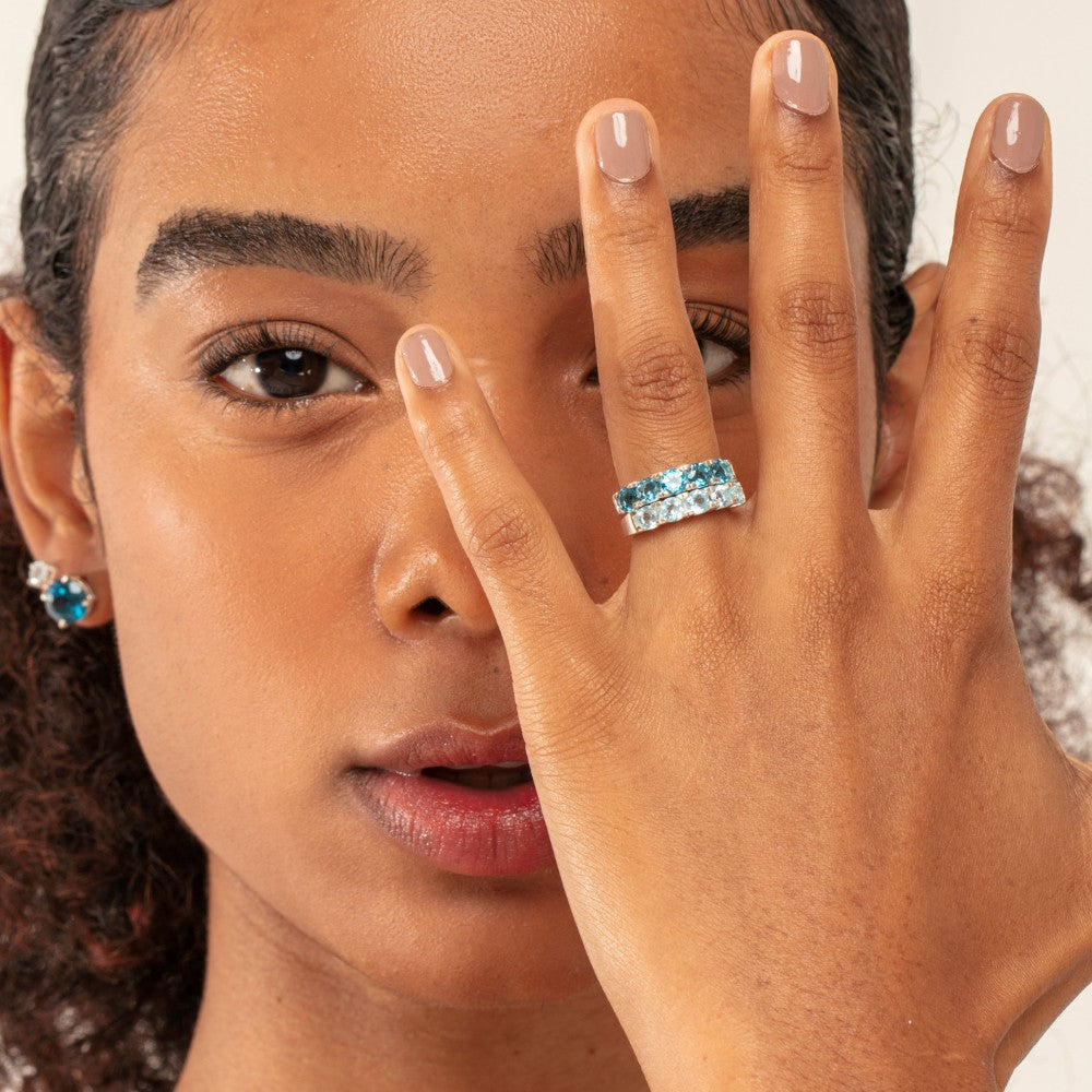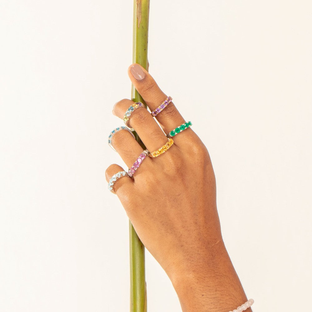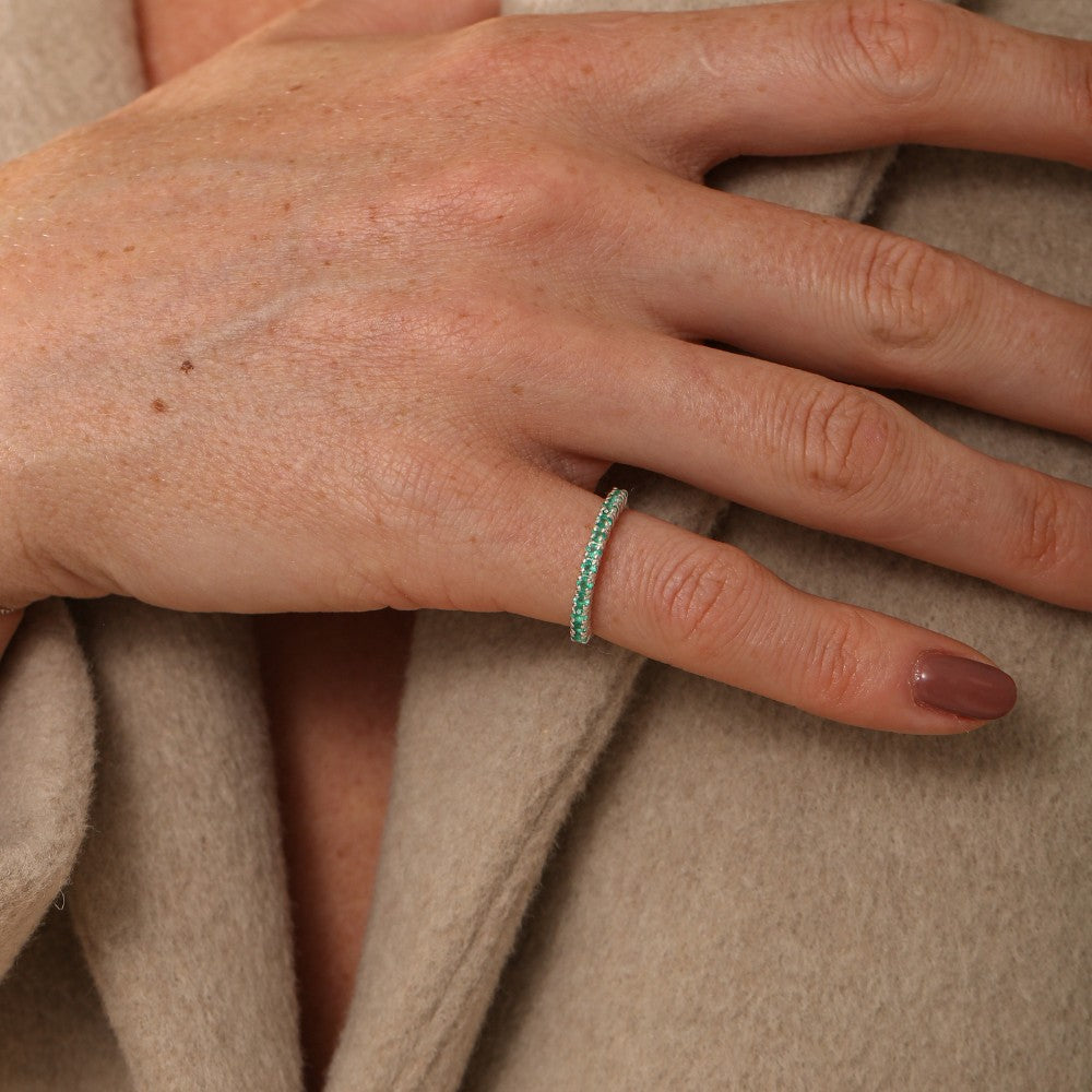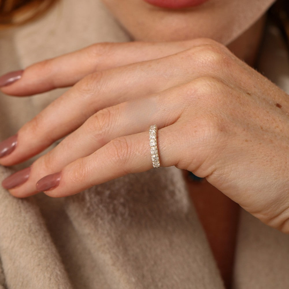 Anel Haal Meia Aliança de Pedra Natural - Prata 925