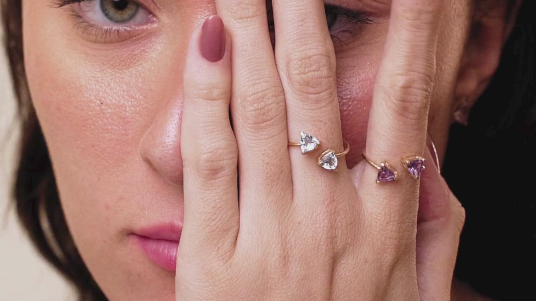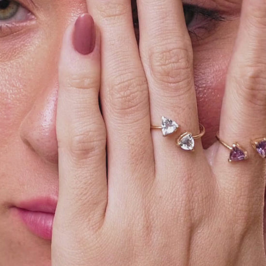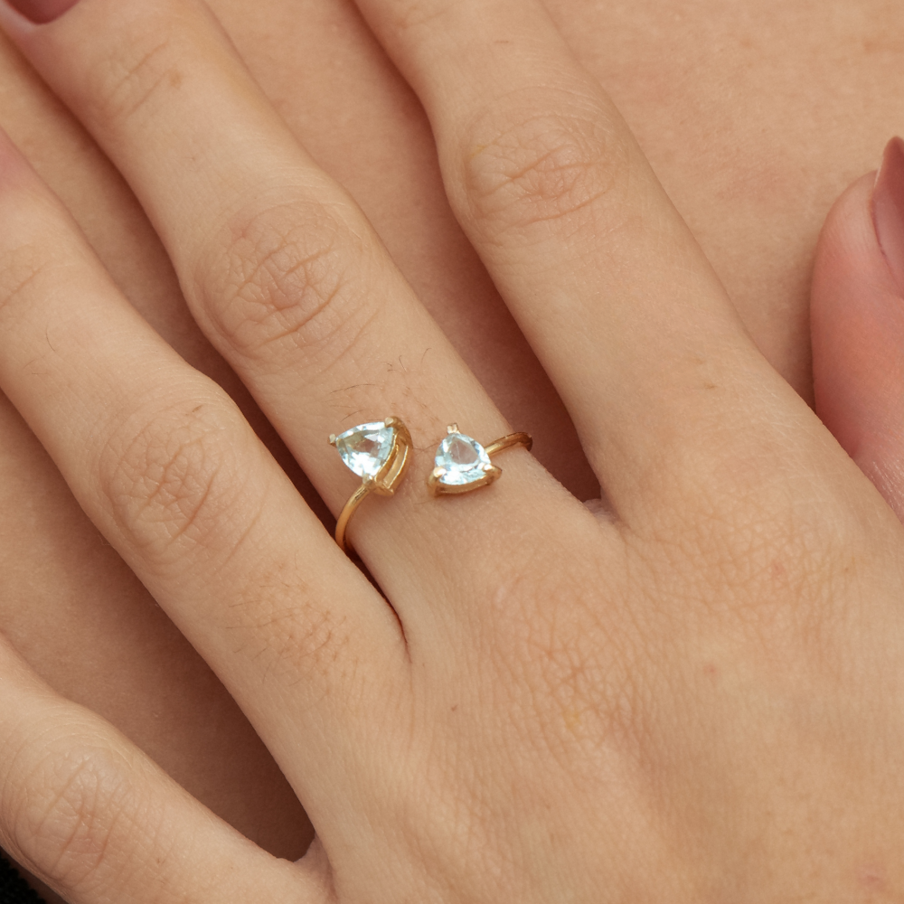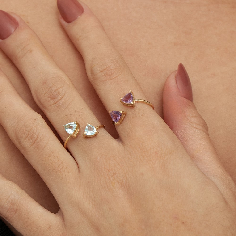 Um é bom, dois é muuuuuuito melhor! Anel duplo regulável com 2 Pedras Naturais em formato trillion tamanho 5x5mm.