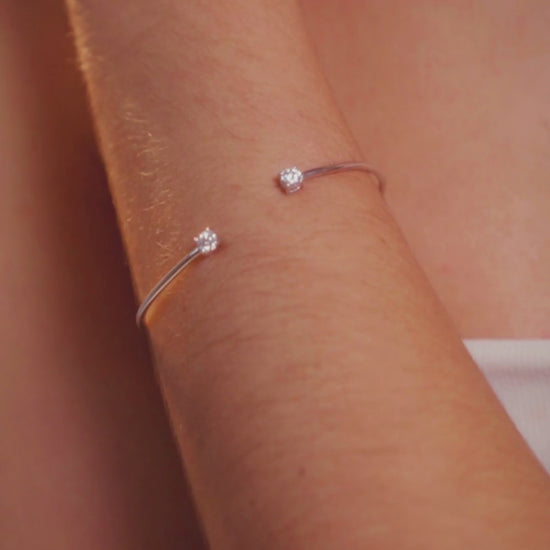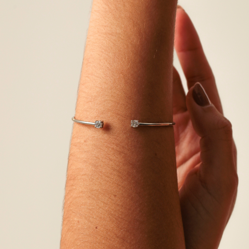 Com duas pedras 4mm de Moissanite, a pedra sintética que, a olho nú, não da para dizer a diferença entre um diamante.