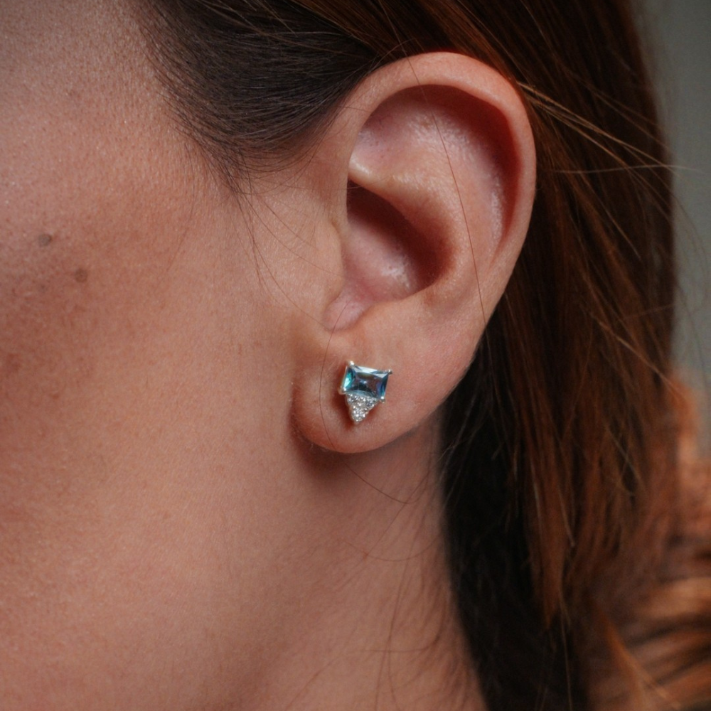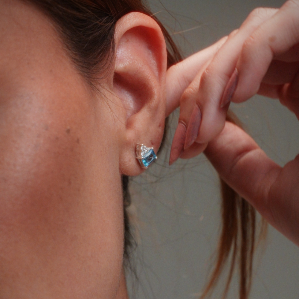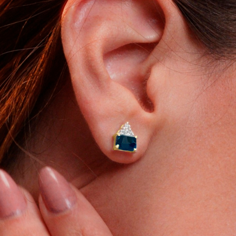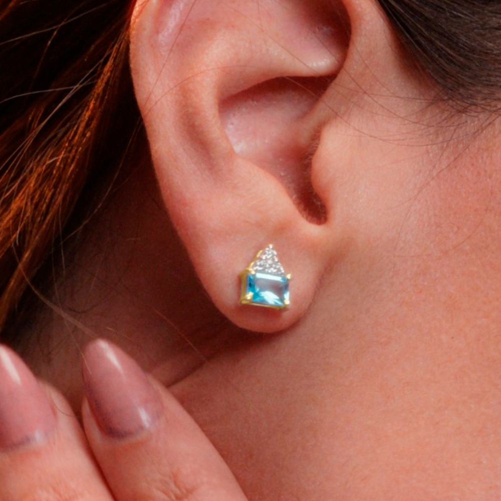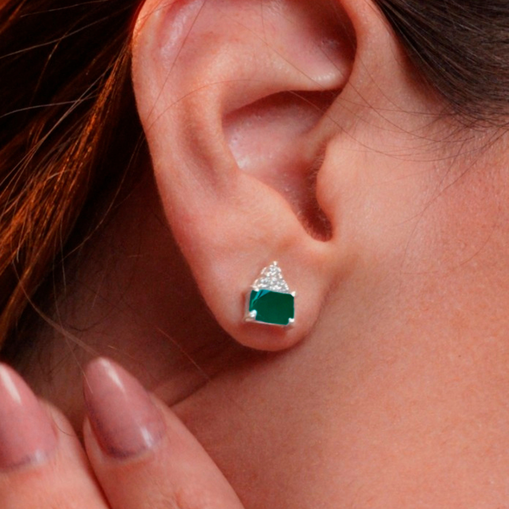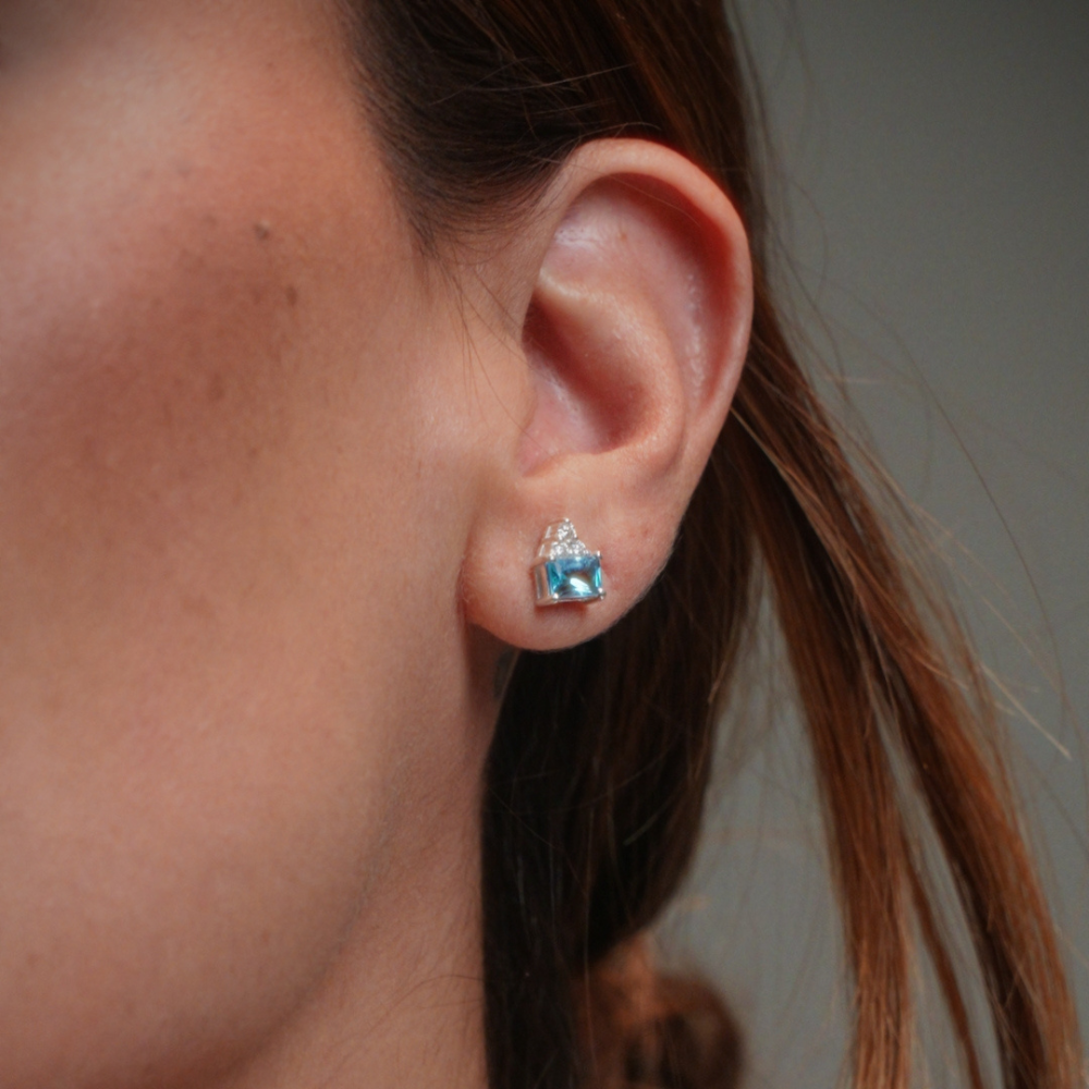 Com elegância atemporal, apresentam uma pedra baguete de 4x6mm de pedra natural da sua escolha, combinados com pedrinhas de Moissanite que capturam luz de forma deslumbrante.