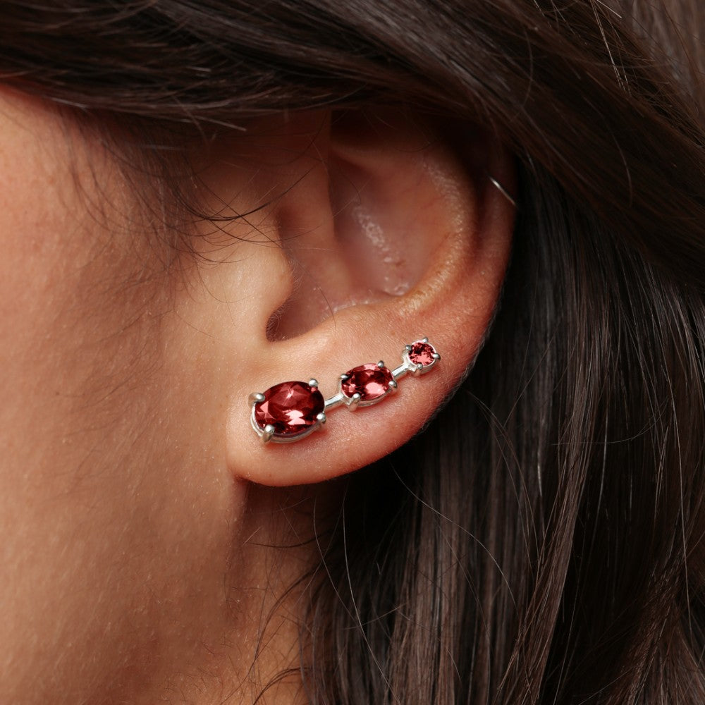 Com uma pedra oval de 6x8mm, seguida por uma pedra oval de 4x6mm e finalizada com uma pedra redonda de 3mm, este modelo tem um efeito mais alongado, o que da uma bela destacada na orelha, roubando todos os olhares. Absolutamente encantador.