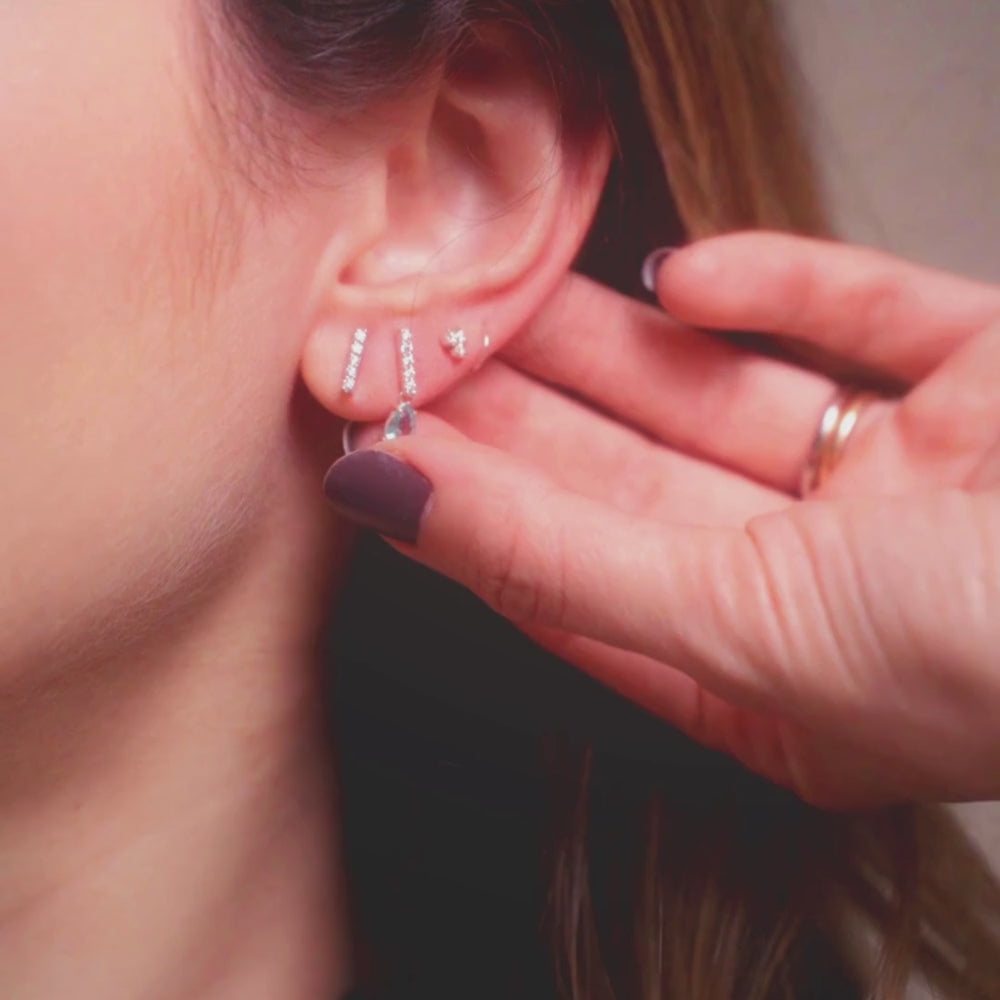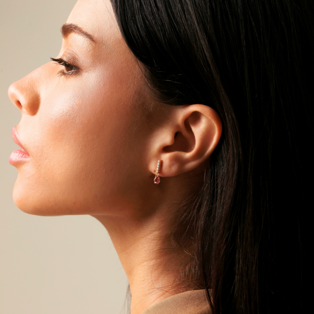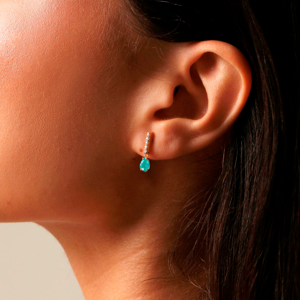 Confeccionados em prata 925 com banho de ouro ou rhodium, eles tem um design refinado. Com Moissanite e a gota de pedra preciosa de 4x6mm, possui um toque elegante e exclusivo.