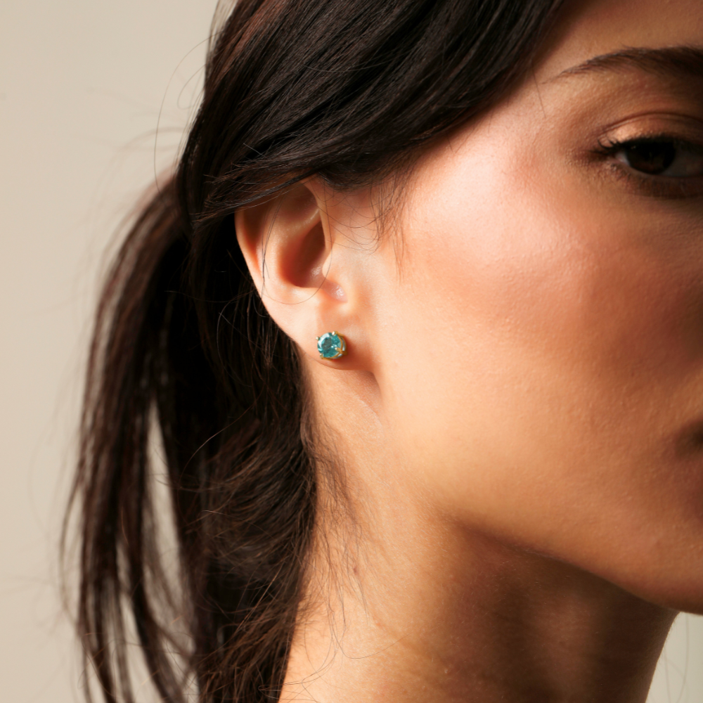 Brincos Haal Solitário Apatita 6mm - Prata 925