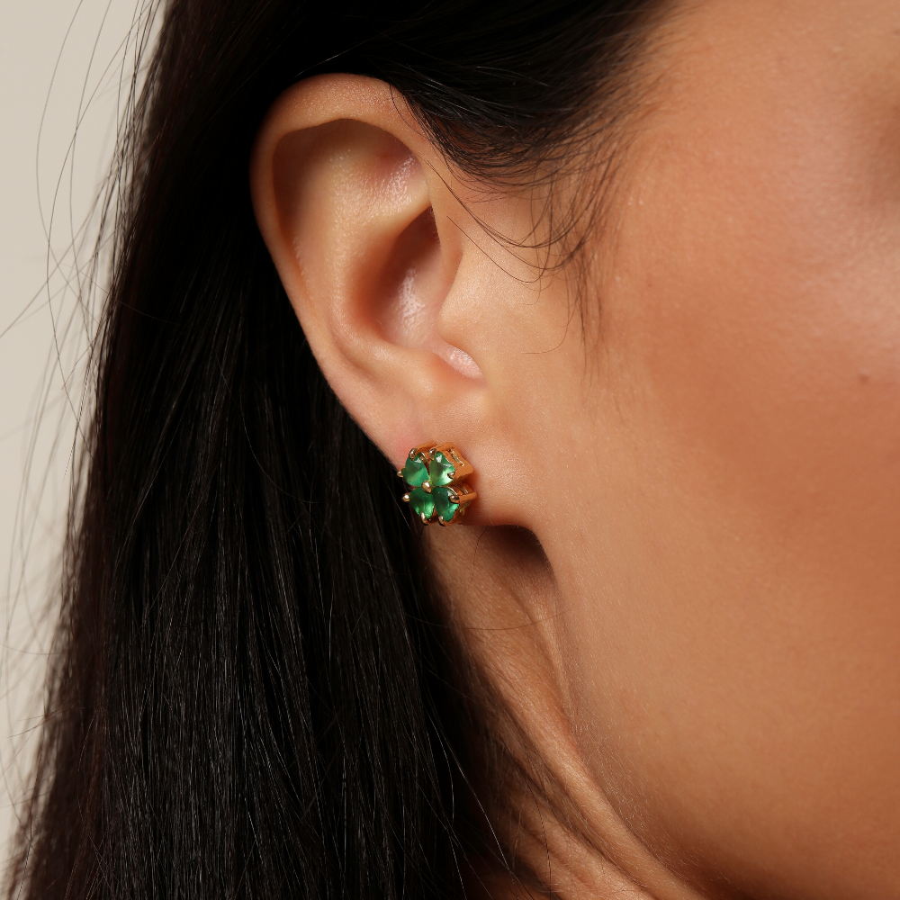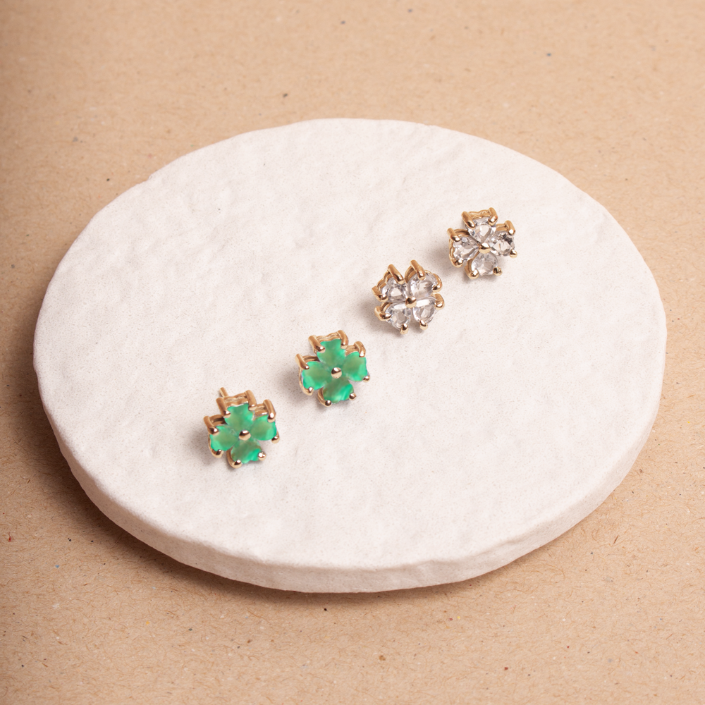 Perfeito para usar no dia a dia ou em eventos mais formais, o Brinco Trevo com Pedra Natural traz brilho, charme e personalidade.