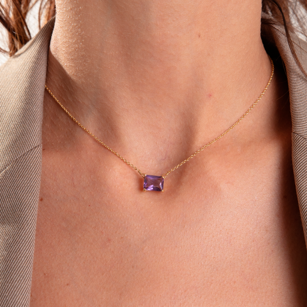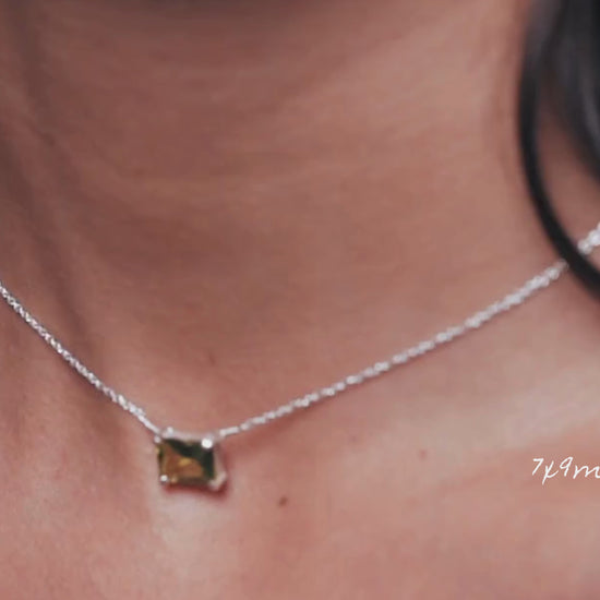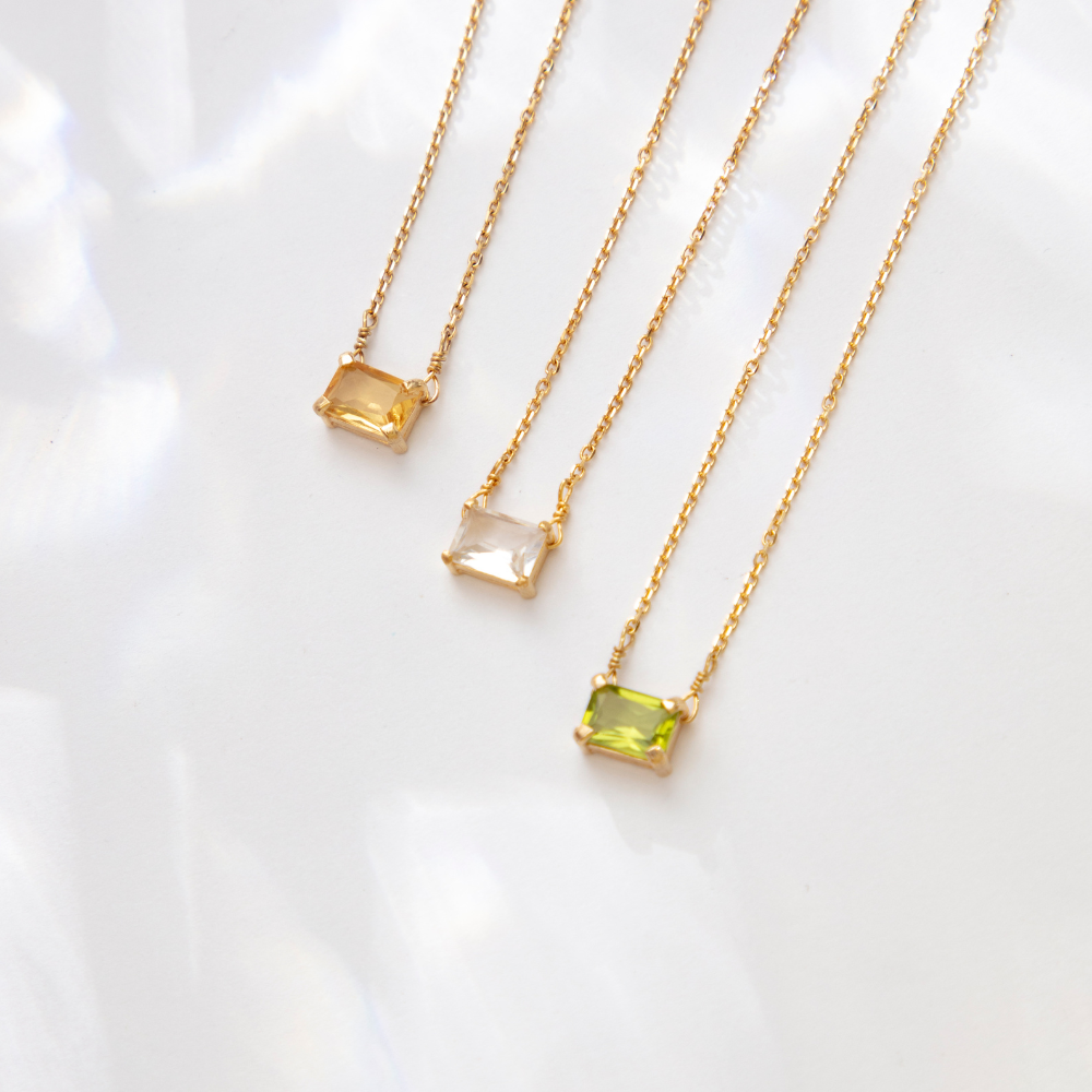 Colar de prata 925 em corrente modelo cartier, fina e resistente, com pingente baguete no centro de caixa galeria com pedra natural cravada tamanho 5x7mm e 7x9mm.