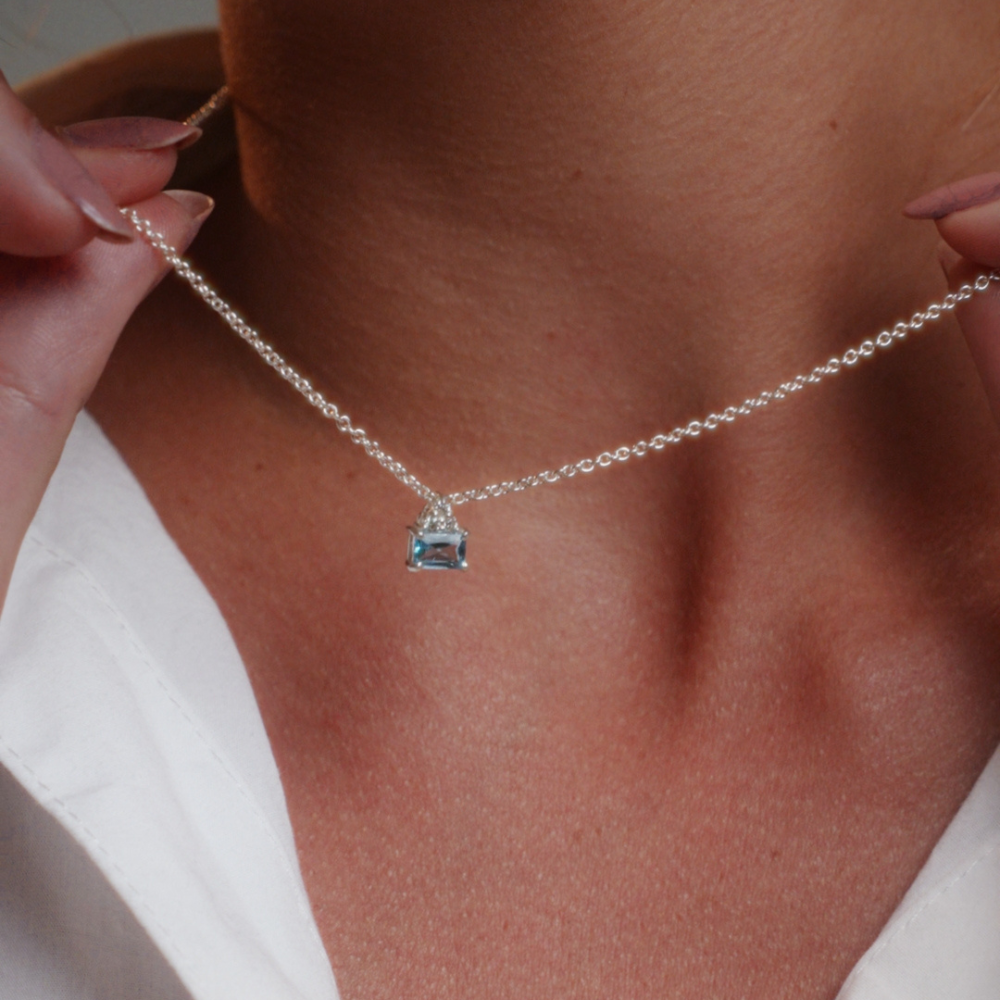 Com elegância atemporal, apresentam uma pedra baguete de 4x6mm de pedra natural da sua escolha, combinados com pedrinhas de Moissanite que capturam luz de forma deslumbrante.