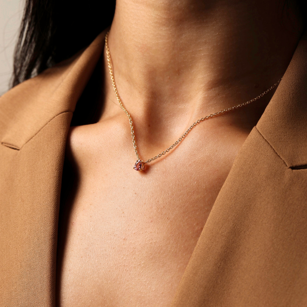 Colar Haal Gota Turmalina Rosa 4x6mm - Prata 925