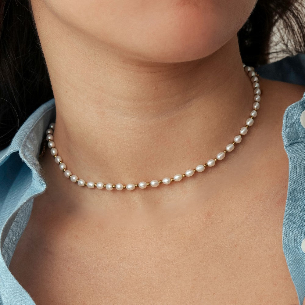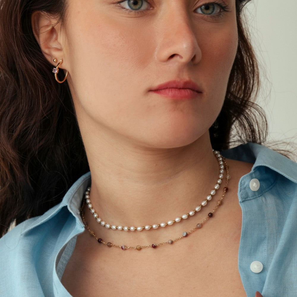 Pérolas naturais nunca saem de moda e a Hematita intercalada entre as Pérolas traz uma presença e sofisticação.