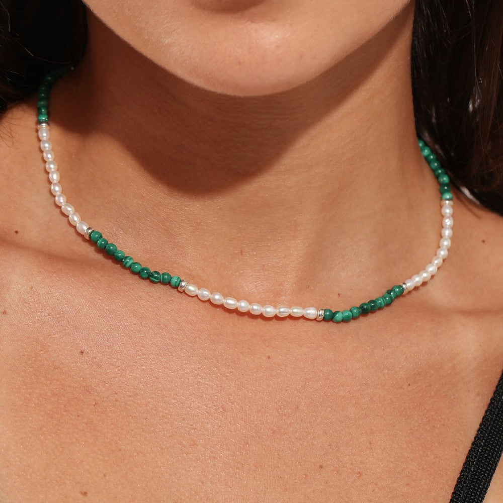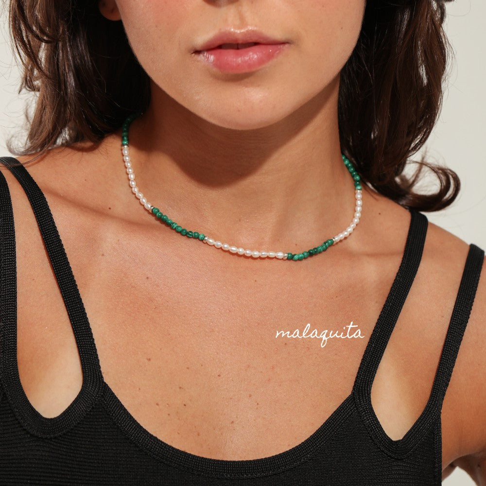 Colar todo intercalado com pérola e pedras naturais, tem um design incrível e fica incrível tanto sozinho quanto em um mix.