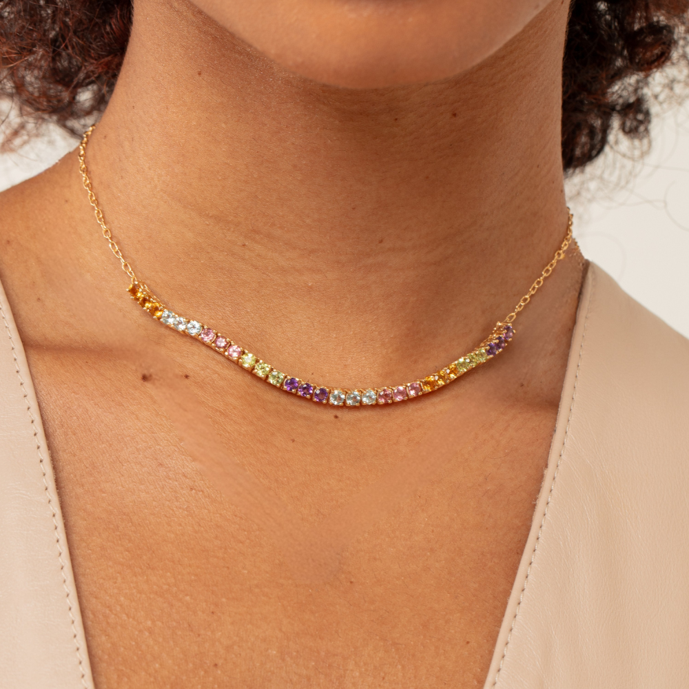 Opção com PEDRAS NATURAIS Rainbow com Citrino, Topázio Sky, Turmalina Rosa, Peridoto e Ametista.