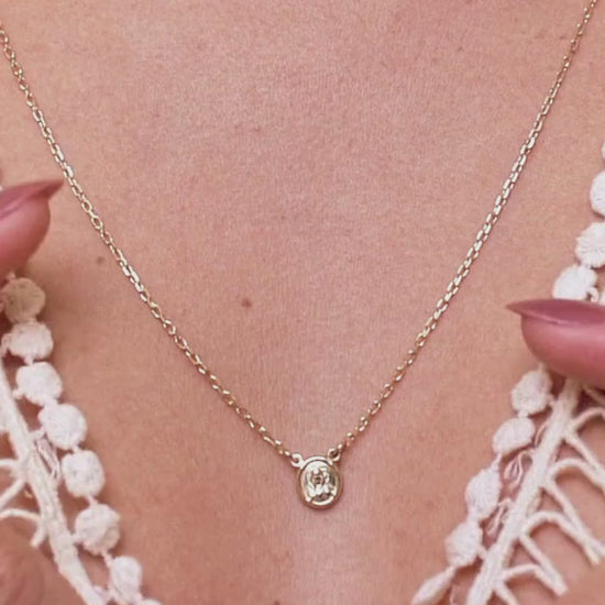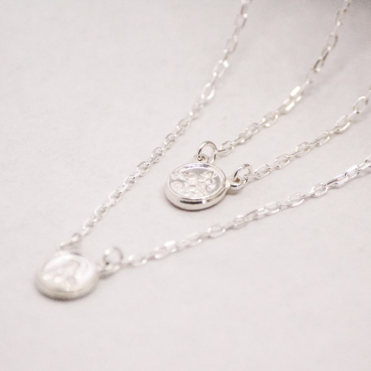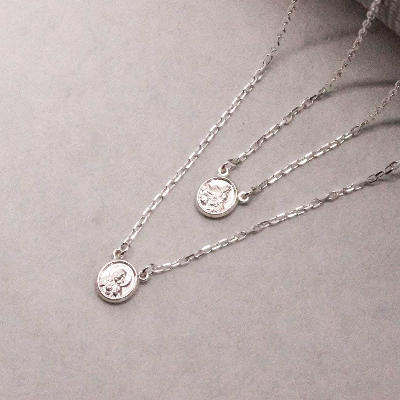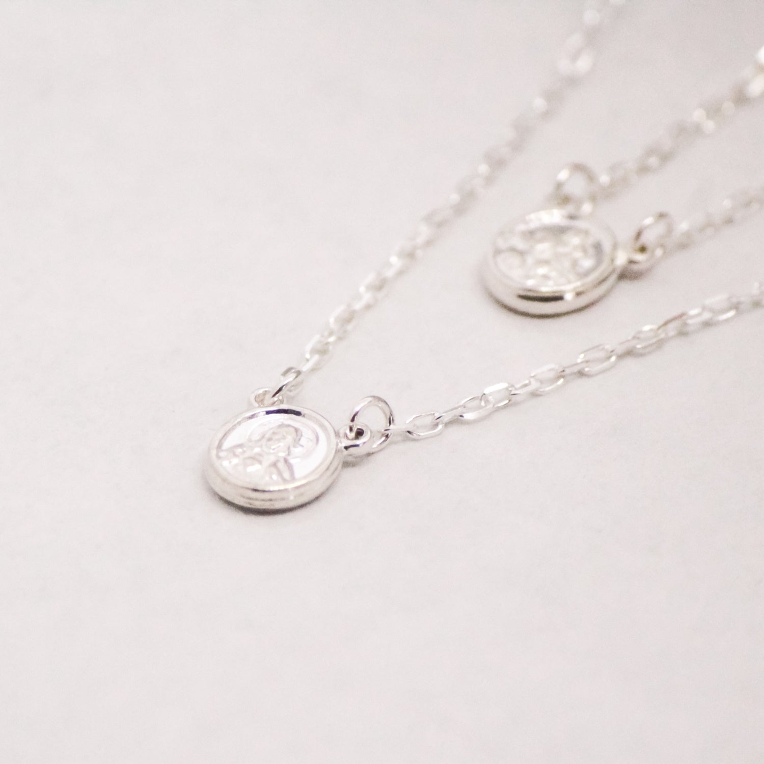 Escapulário unissex tradicional com Jesus e Nossa Senhora do Carmo, medalhas arredondadas.