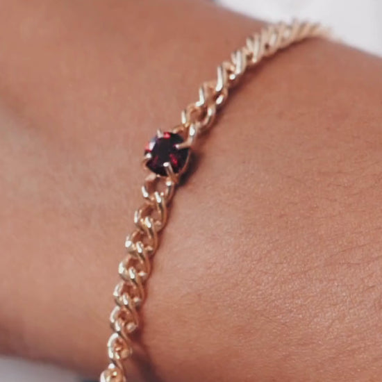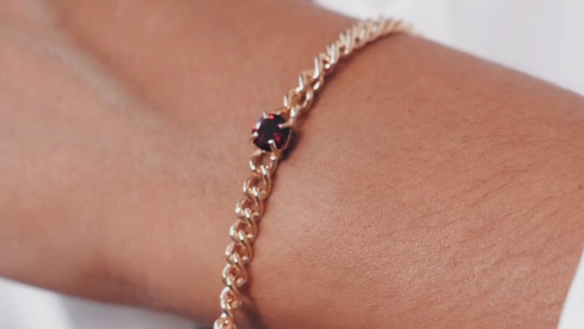 Dentre a nossa linha de peças mais despojadas temos o nossa pulseira Sophie, toda em corrente grumet de espessura 4mm com uma pedra natural de sua escolha no centro.